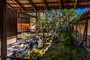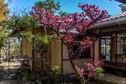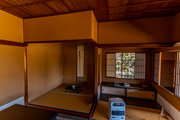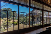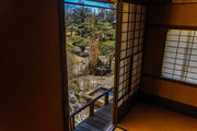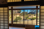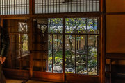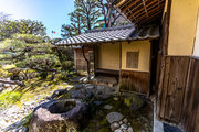 事前予約が必要なことに気付かず、突然、訪問して、ご迷惑をおかけした。そのため、室内は竹の間と離れの一部だけである。庭園は駆け足でほぼ全域を鑑賞・撮影した。風の強い日だった。