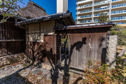 大津市中庄1-19-23 蘆花浅水荘 表門 重文 近代/住居 大正 大正10(1921) 一間腕木門、寄棟造、檜皮葺、両袖塀及び腰掛待合付 19941227