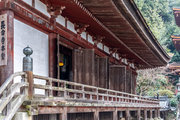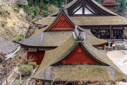 この本堂は七間に六間、実長は正面20.41m、側面20.50m一重、檜皮葺の大建築である。一見してわかる天台建築である。