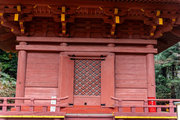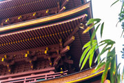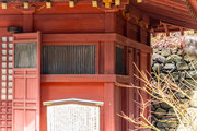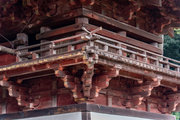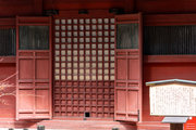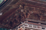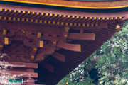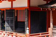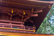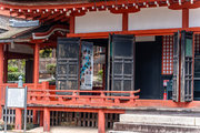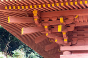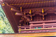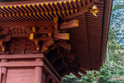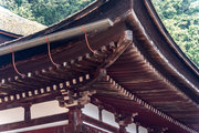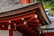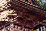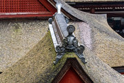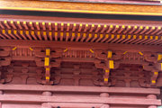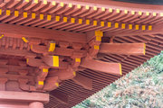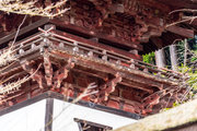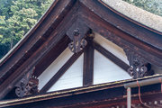 一般の参詣者が出入りする西側からは、破風がよく見え、三つ下がった懸魚も形美しく印象的である。