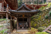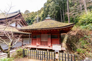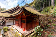 本堂と三重塔の間に建つ宝形造、方三間の小堂。屋根上の露盤の銘から慶長11年(1606)の建立とわかる。
