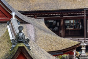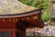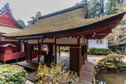 屋根入母屋造、檜皮葺で桃山時代の復興建築である。