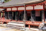後方の張出し部を除いて縁がぐるりと回っているが、高欄の擬宝玉は桃山時代のもので刻銘がある。