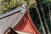県有形文化財:建造物:指定 S57 3 31 拝殿:桁行三間、梁間二間、入母屋造、桧皮葺