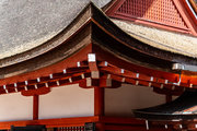 ゆるやかな屋根の三角部(破風)の美しさに目を奪われる。