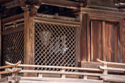 庇下前室の花形模様を施した格子(花狭間)や欄間の彫刻に特色がある。
