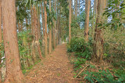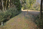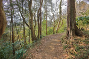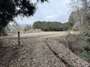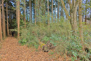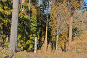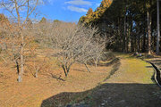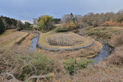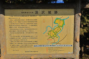 【紹介資料】 深沢城跡は抜川と馬伏川の合流点にあり、断崖に囲まれた自然の要害を巧みに利用して築かれた平城で、北側から本丸、二ノ丸、三ノ丸と呼ばれ、東西約300m、南北約400mの連郭式城郭です。各郭は空堀によって区切られ、郭と郭は土橋でつながっており、武田氏の築城法といわれる三日月堀がよく残っています。この深沢城は相模、甲斐、駿河を結ぶ交通の要衝に位置し、今川氏によって築かれましたが、その後武田氏と後北条氏が争う場となりました。永禄12年(1569)11月、北条綱成が守る深沢城に武田軍が攻め込み、翌年1月武田氏から「矢文」が打ち込まれて、ついに北条綱成は深沢城を開城しました。その後も幾度となく争奪戦が繰り返されましたが、信玄が病死し、武田氏の勢力が弱まると武田の駒井右京之進は城を焼いて立ち去りました。深沢城跡の一角に明治12年この地を訪れた乃木希典が詠んだ詩を記念して歌碑が建てられています。