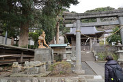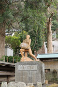 鳥居の左側に曽我兄弟の父である河津三郎が力石を持ち上げている像がある。