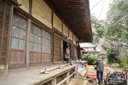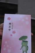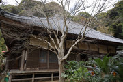 本堂の左に河童の象がある。おりしも河津桜満開の季節で、河童に垂れ下がってくる桜は見ごたえがある。