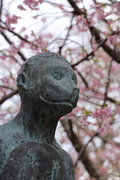 河津川の並木よりもこちらの桜が、今回は一番きれいだった。甕を抱えて立つ河童がかわいい。河童は伝説上の生き物であるのかどうかは、この情報が進んだ現在でも解明されていない。全国的にもあまりにも多くの河童伝説が存在するからである。