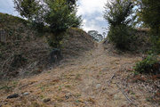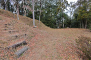 【指定資料】 牧之原市勝田に所在し、中世勝間田氏一族の城跡であるとされている。牧ノ原台地の山麓が東に向って突出する丘陵上に位置し、本曲輪、二の曲輪、三の曲輪、出曲輪及び空掘、堀切、土塁などの遺構が見事に残っている。中世城跡としては県内で保存状態の良好なものの一つで、発掘調査によって遺構、遺物が確認されている。史跡指定地内は整備が行われ、当時の城の様子を見学することができる。