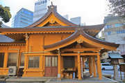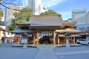 市街地中心部の境内奥に南面する、建ちの高い鉄筋コンクリート造の一間社。切妻造平入銅板葺で、正側面に高欄付縁を廻らし脇障子を建てる。組物は平三斗で、頭貫に大仏様風の特異な木鼻を付す。軒廻りや妻部を含めコンクリートにより丁寧に造形された社殿。