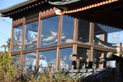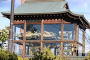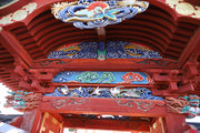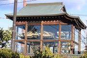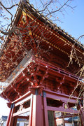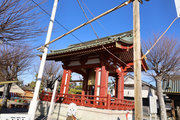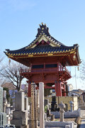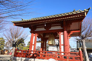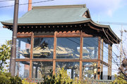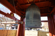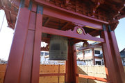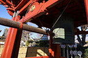2,山門右に朱色鮮やかに、金銅(きんづくり)大梵鐘。厄除元三慈恵大師一千年 御遠忌記念事業として昭和59年完成。日本一大きな金の釣り鐘(らしい)重さは2トンとのこと。金鐘をおさめる鐘楼は、日光の国宝修理の権威者・文化財建築第一人者