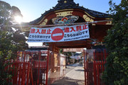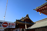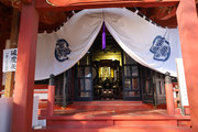 白壁の大きな本堂であるが、金網、看板、祈祷案内、順路など看板ばかりで、じっくりと全容が見られない。残念である。本堂内も厄除け祈祷を申し込んだ本人とその家族しか入れません、と注意書きがあり、本堂内をみることはできない。またお賽銭を投げるところも金網越しで、その先は見えず。
