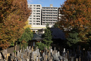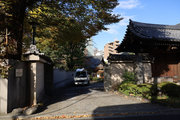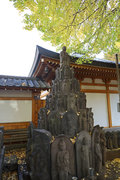 入り口は門のほかに脇から入る道もある。山門は本瓦葺きの薬医門本堂は入母屋造り屋根、平入り、流れ向拝で立派である。樹々も多く墓所も段々になっていて見晴らしも良い。十二支堂は新しい。宝形造屋根の上、露盤の上に火焔に龍を入れた火焔宝珠が美しく光っている。