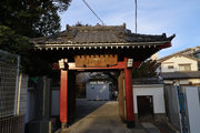 赤い山門がきれい。945(昭和20)年の空襲で建物は全焼。昭和30年代に再建して現在に至っている。