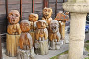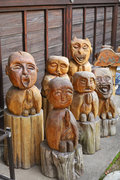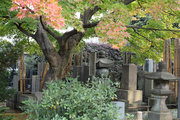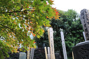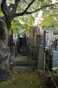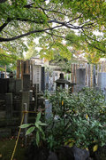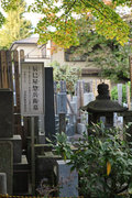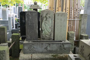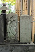 門を入ると左側に女装して狂言神楽を踊った辰巳屋惣兵衛の墓がある。墓石には踊る姿が刻まれている。