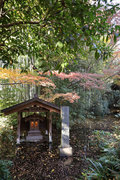 観音堂は、RC造の八角堂で、池に立つ浮御堂。前に太鼓橋が架かる。