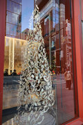 フェンディーは訳が分らないデザインのツリーです。ちょっと不気味。どのような意図か訊いて見たい……。TASAKI真珠は真珠で飾られたツリー。シンプルですが総額いくらになるのかと計算しつつ(笑)向かいのヤマハへ。ヤマハは檜のチップのツリー。とても良い香りがしました。装飾は松ぼっくりのみ。スワロフスキーはきれいなツリーでしたが撮影ごめんなさいで、没にしました。残念!