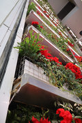 旧名は『銀座アパートメント』とあるように外観を見ると、見事にアパートメントの様相です。しかも窓の外側に植物が飾れるような空間が設けられていて、植物の緑が所々に見られ、パリのアパートメントの印象でもあり、とてもモダンです。最上階は住居。1階から6階までは貸店舗および貸室となっていて、主にアトリエやギャラリー、美容室、メガネやさんなどが入っています。