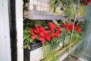 屋上には庭園があって四季の花が咲き、食事の出来るテーブル椅子などが置かれて自由に出入りできます。周囲はガラスで覆われていろいろなものが落下しないようになっていますが、空は抜けていますので風の通りも良く季節のさわやかさが感じられます。皇居のお堀、新幹線、高速道路なども見下ろすことが出来ます。