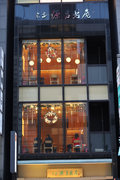 昭和初期の建物。氷室、甘味所、居酒屋、内装業などに変化してきた建物ですが、現在は秩父錦のお酒の販売元がアンテナショップの形態で、お酒を出すお店となっています。見ていてとても落ち着いた気分がする建物です。左右シンメトリーの安定さでしょうか。ウィンドーも2階の戸袋も左右対称。デンと構えた看板の重厚さと瓦屋根まできれいに見える木造の出桁造り。町家風と言われています。江戸時代の両替商の大店と言われてもそうだと思ってしまう店構えです。ウィンドーの中が少し荒っぽいのが残念です。