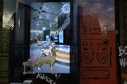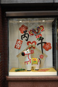 鳩居堂のウィンドーは既にお正月模様。いつもそう。来年の干支の猪さんがいました。