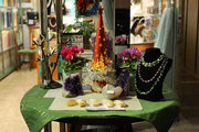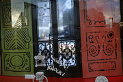 エレベータは手動式でアコーディオンドアーを開けて更にエレベータのドアーを手動で開けて閉めてやっと動き出す、というもの。二人くらいしか乗れない小さいものですが高級感があります。階を示す文字盤もとてもレトロです。廊下のコンクリートは人の歩く真ん中がすり減って黒々としています。各室のドアやガラスも趣があり、所々のギャラリーに、展覧会開催おめでとうのお花が届いている華やかさとそれでいて人のいない狭い通路の風景が、ビルの中にいるのではなく、どこかの路地裏にいるような錯覚さえ覚えます。