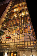 日本の伝統である『江戸切り子』を光の器としてデザインし、伝統と革新というコンセプトを元に建てられています。ビル全体が切り子のガラス状で、夕日にも朝日にも映え、雲の流れも映し、見る角度により、様々な銀座の風景を写しだしています。もちろん夜景にも映えて、どこからみても美しいビルです。