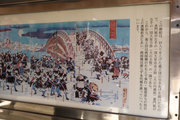 中田屋茶舗……今から160年前の1857(安政元)年創業。日本橋の山本山で修行を積んでいた初代は、荷揚げに便利な堅川沿いに独立して店舗を構えます。東京大空襲ではじめの店は焼失、その後、近くの当地に新しくお店を構えたそうです。墨田区の出している説明版には古い当時の写真が飾られています。開店の日でしょうか日の丸の旗と、福引き大売り出しの見出し!もちろん屋根の上はただただ広い空、高速道路など見えません。