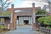 建物は、一間薬医門(いっけんやくいもん=本柱の後ろに控え柱2本を建て、切妻屋根をかけた門)、屋根は切妻(きりづま)造、茅葺です。 この門は和様(わよう)を主調としますが、禅宗様(ぜんしゅうよう)を併用して、一部に大仏様(だいぶつよう)も巧みに取り入れた意匠的にも優れた建造物です。調布市教育委員会ホームページより転載