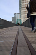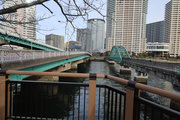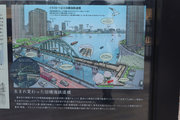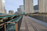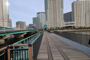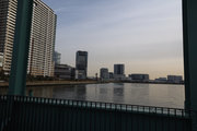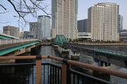 晴海橋とほぼ同じ距離しかない鉄道橋で、廃線になった赤茶けた線路は、開発著しい高層マンション群の敷地に吸い込まれるかのように消えて、古きよき時代をふと振り返りたくなる趣です。