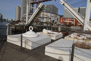 ドックがあった形跡が、錆びた楔で残り、石川島播磨の<IHI>の会社のマークや、跳ね橋モニュメントが当時の面影を忍ばせてくれます。