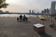 ららぽーとの前には船着場。お台場に行く“卑弥呼”も時々停まっています(ここは石川島播磨造船所の跡地で跳ね橋が残っています)。