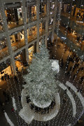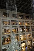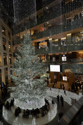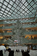 『西野カナが、屋内日本最大級の高さ約14.5mのクリスマスツリーとコラボレーションする。今回のコラボでは、2018年11月21日〜12月25日まで開催される、JPタワー商業施設「KITTE」のクリスマス・イベント【WHITE KITTE】にて、ライトアップ・プログラム「Bedtime Story Ver.」を実施。1階アトリウムの大きな吹き抜け空間に、まるで雪が降り積もったかのように真っ白な装飾が施された、屋内日本最大級の高さを誇るクリスマスツリーが登場。情緒あふれる音楽とともに、光の粒が天井から壁面を伝ってまるで雪が舞い散るように降り注ぐ様子を上映し、クリスマスの雰囲気を盛り上げる。』……という説明ですが、こちらも矢張り点灯前に行ったのでカラーグラデーションだけの楽しみとなりました。全体にくすんだ色の感じですが大きさには圧倒されます。このビルは屋上に庭園があって東京駅を見下ろせるカメラマニアにとっては絶好スポットです。