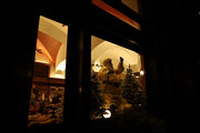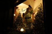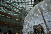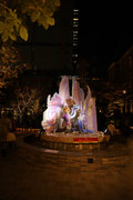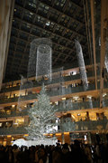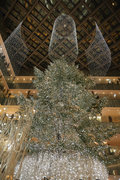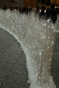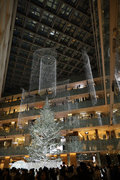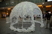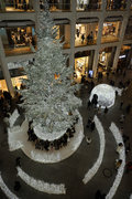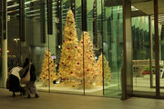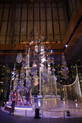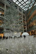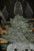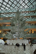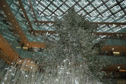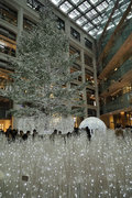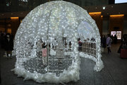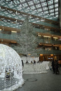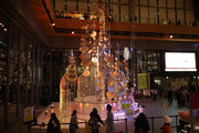 『フィンランドの伝統的なモビール「ヒンメリ」をモチーフにしたオブジェ』……という説明。こちらもライトアップ前で夜の気配は想像するのみですが、ちょっとひんやりとしたクリスマスツリー。緑と赤の色もないので、単なるオブジェの様子も。