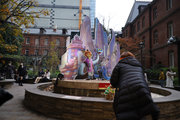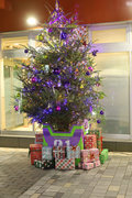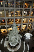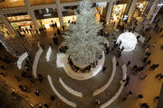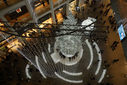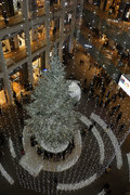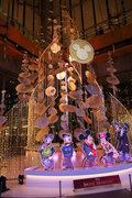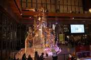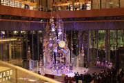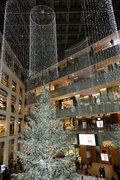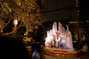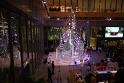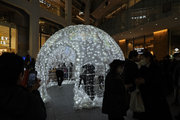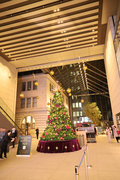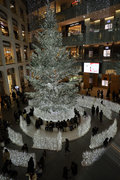 『「北欧のクリスマス」をテーマに展開。メイン会場のマルキューブに設置された高さ8メートルの「Knit Tree with Yuming」は昨年に引き続きベルベッタ・デザインの長谷川喜美が手掛け、松任谷の「北欧の伝統的な模様のノルディック柄をモチーフにしたらどうか」という意見が取り入れられた。ツリー周辺には同柄の赤いオブジェが設置され、天井から吊るされたミラーボールや大きなボールと毛糸でつながったようなデザインで会場を彩っている。期間中は17時30分から15分間隔で松任谷の名曲に合わせてツリーイルミネーションが実施される。』……という説明ですが、点灯前に行ったので、そのままのツリーでした。しっとりと落ち着いたツリーで赤の色にとても品があり、トナカイも上品でした。