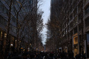 東京駅前に戻ってきた。駅舎復元工事中の駅を見ながら、丸ビルを通りすぎる。