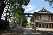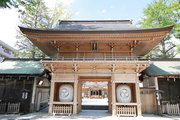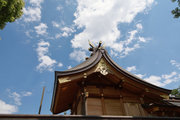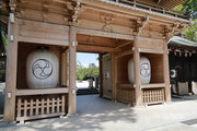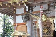 一の鳥居、二の鳥居を過ぎる。参道もコンクリートが敷き詰められてきれいな神社である。楼門の左右に神輿。盛大なお祭りのようで、例祭に渡御する2基の神輿のうち、二之宮神輿の屋根の鳳凰の目が、1994年版のギネスブックに日本一のダイヤモンドとして掲載されている。