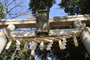 正面社殿の屋根には「16菊紋(十六弁八重表菊)」。16菊紋(十六弁八重表菊)は天皇家のみの紋章として明治時代に定められ、皇室以外の使用は原則禁止されたが、一部例外や緩和があり、現在ではパスポートや一部の社寺、食器など法律の許す範囲でデザイン化されたものがつかわれている。社殿は1964(昭和39)年造営。