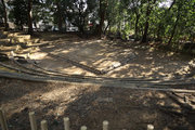 下ると土俵。秋の八幡様の例祭にはここで相撲が取られる。