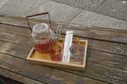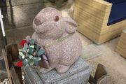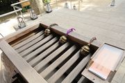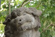 戸越銀座の直ぐ脇の坂を登っていくと、村の森の中に入っていくような静かな石畳みの参道があります。珍しい形と思える4体の像が水盤を支える手水舎があります。鳥居と狛犬を抜けると舞殿の前が広場になっていて何故かソファとクッションとテーブルが。何かのイベントかと思って、出も誰でも座って良さそうなので坐ると、お茶が出てきました。ビックリでした。甘い飴が付いています。神社の方のご好意のようです。