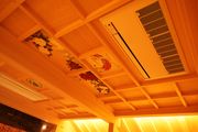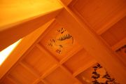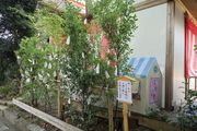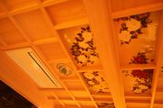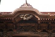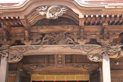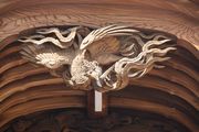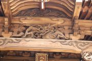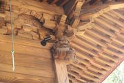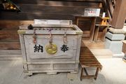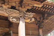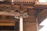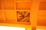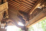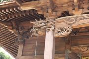 社殿は欅造入母屋造銅版瓦屋根で1855(安政2)年に創建されたもの。震災、戦災にも免れ都内でも古い木像の建物。本殿の脇にゆるやかな木の階段が有り、本殿内部にあがって休むことができます。天井の絵はまだ新しいようでしたがきれいでした。本殿脇の木は、品川区の保存樹木指定で、高さ18mにおよぶ巨木「ケンポナシの木」。天然記念物。推定樹齢250~300年。夏には白色の小花を開き秋には甘味のある実を結ぶ、とありますので、かなり長い時間見上げて探しましたがみつかりませんでした。神社では普通鈴を紐でゆらして鳴らすのですが、戸越八幡神社ではお賽銭箱の前に三個の鈴が有りそれを手にとって鳴らすようです。見上げると龍の彫刻がとても細やかできれいに思いました。