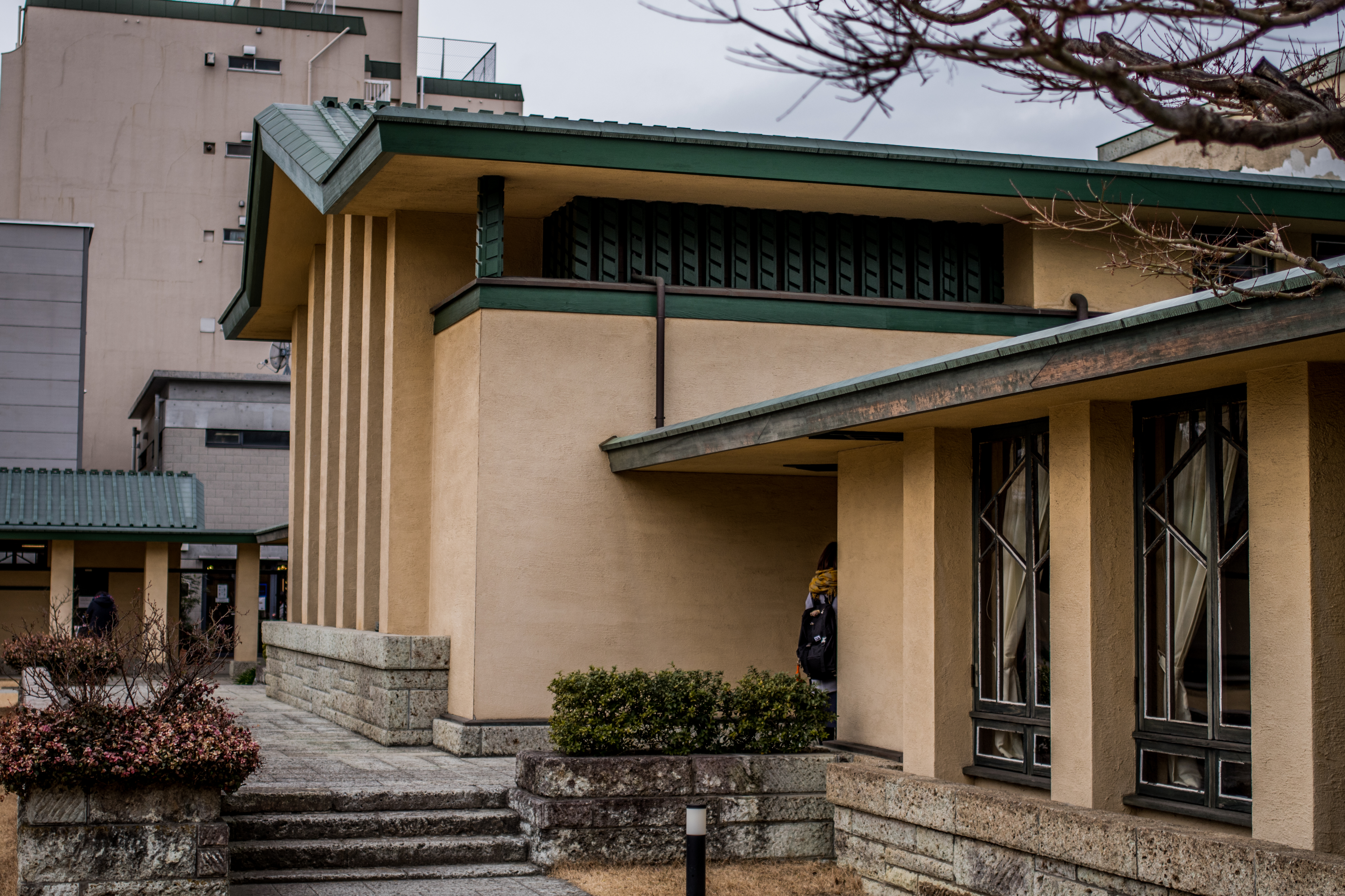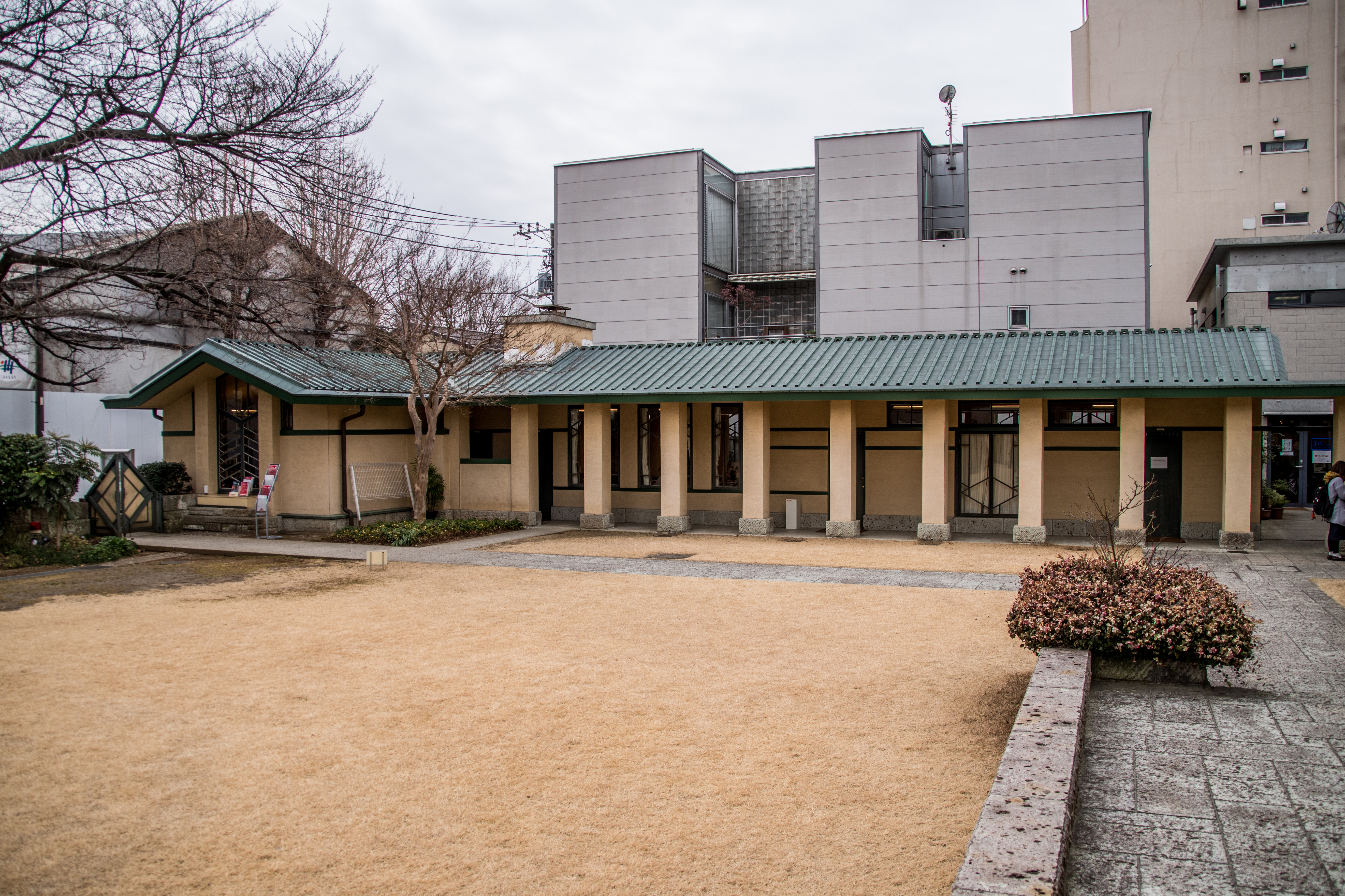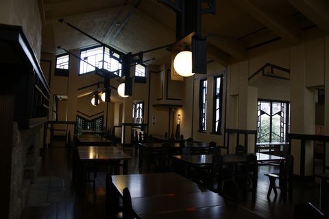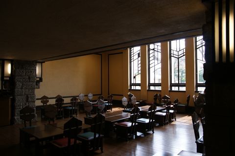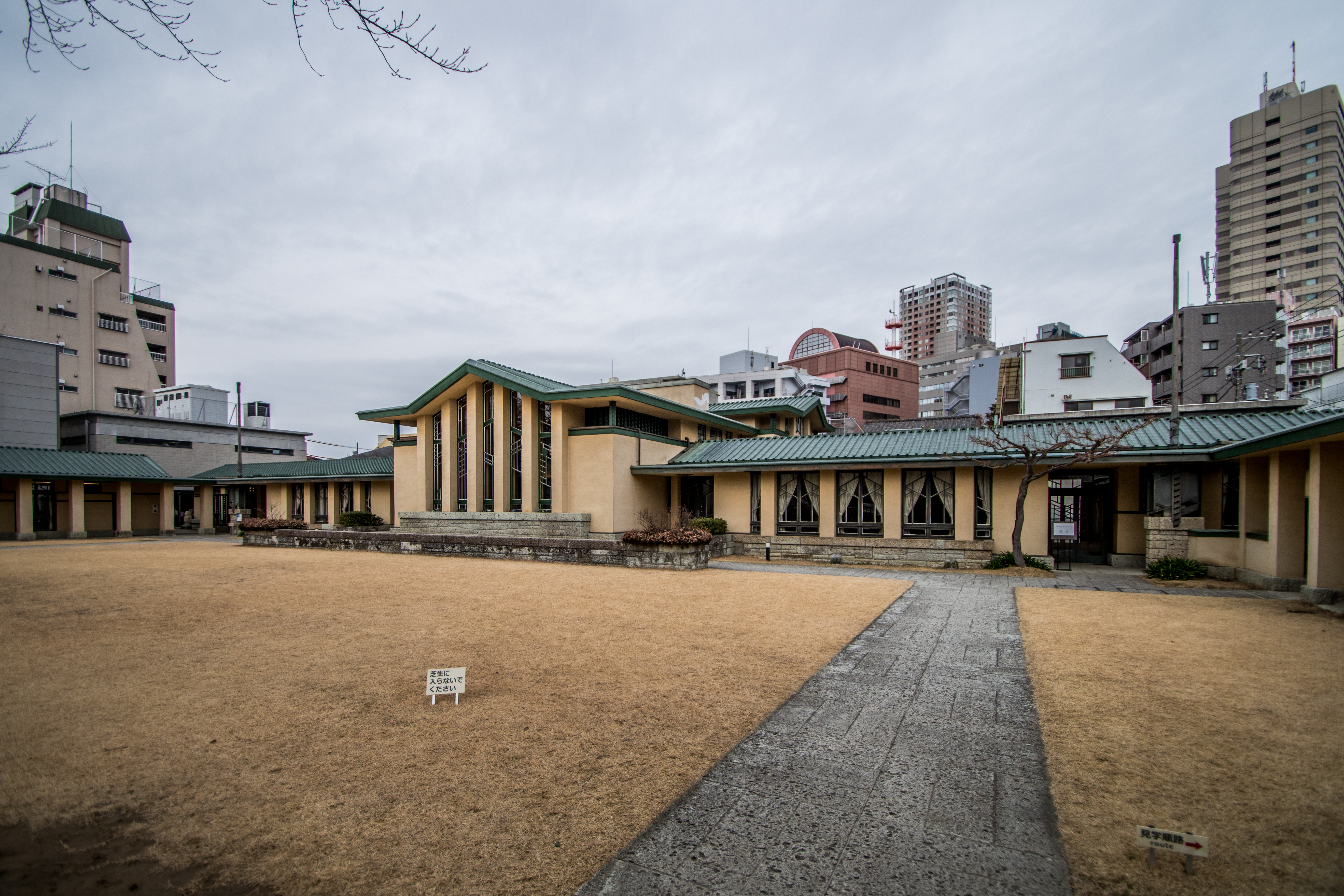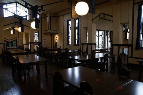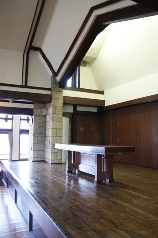 豊島区西池袋2-31-3 自由学園明日館 中央棟 重文 近代/学校 大正 大正10(1921) 木造、建築面積639.6㎡、一部二階、東西翼屋及び半地下付、切妻造、鉄板葺