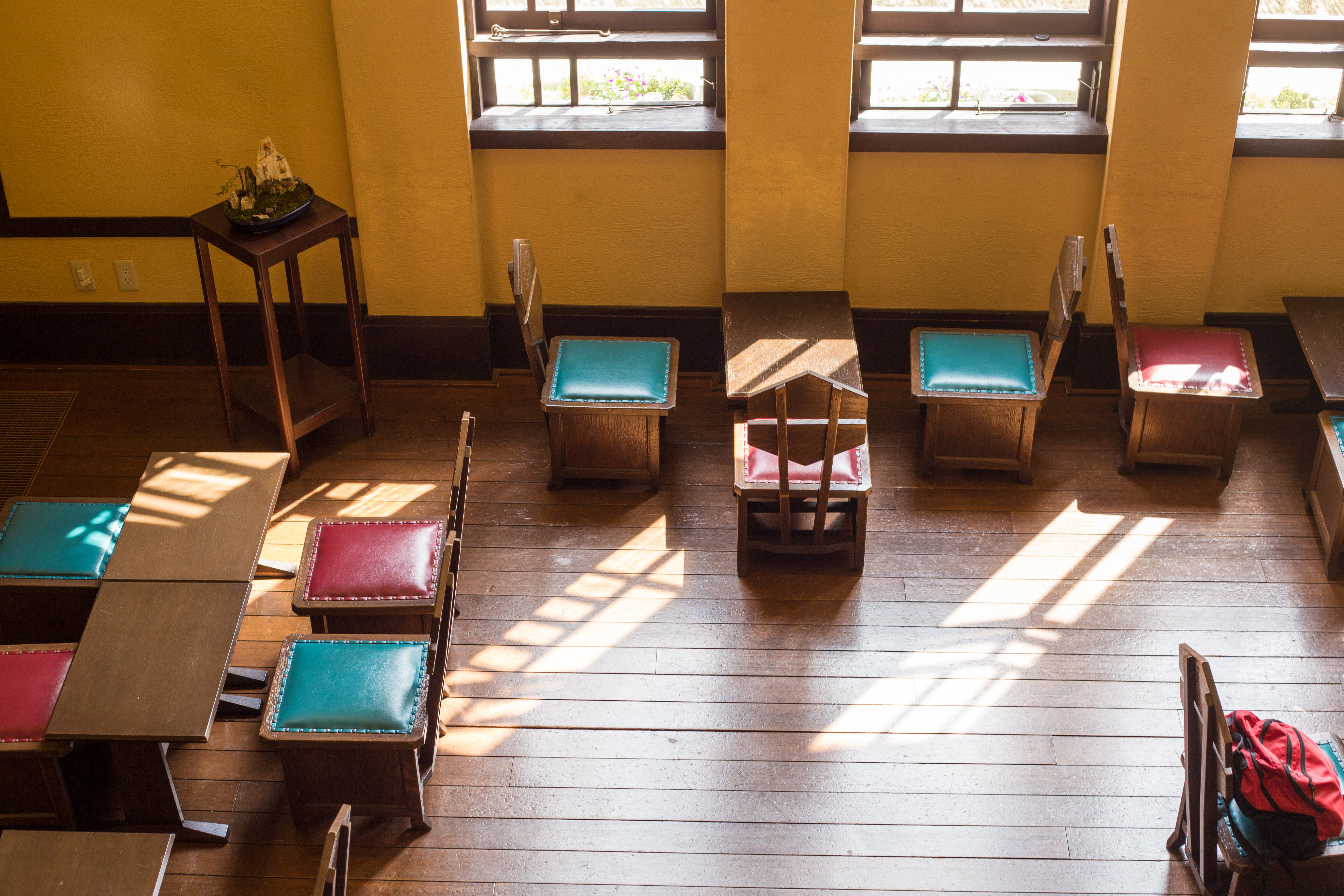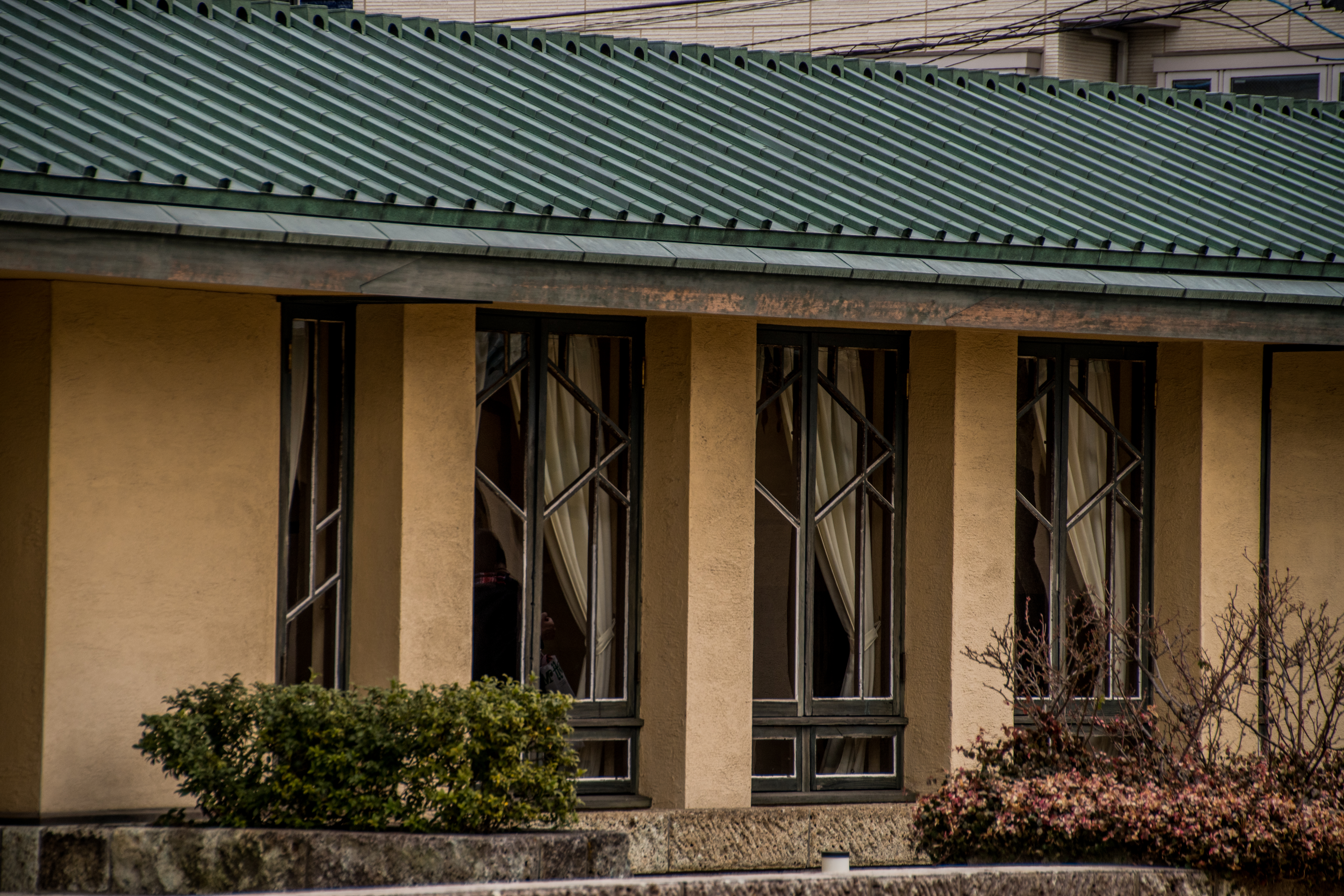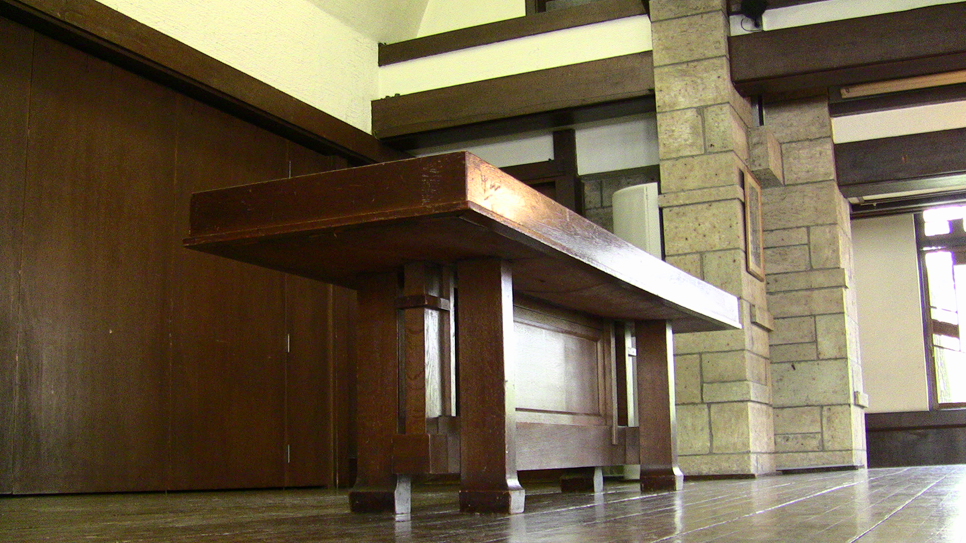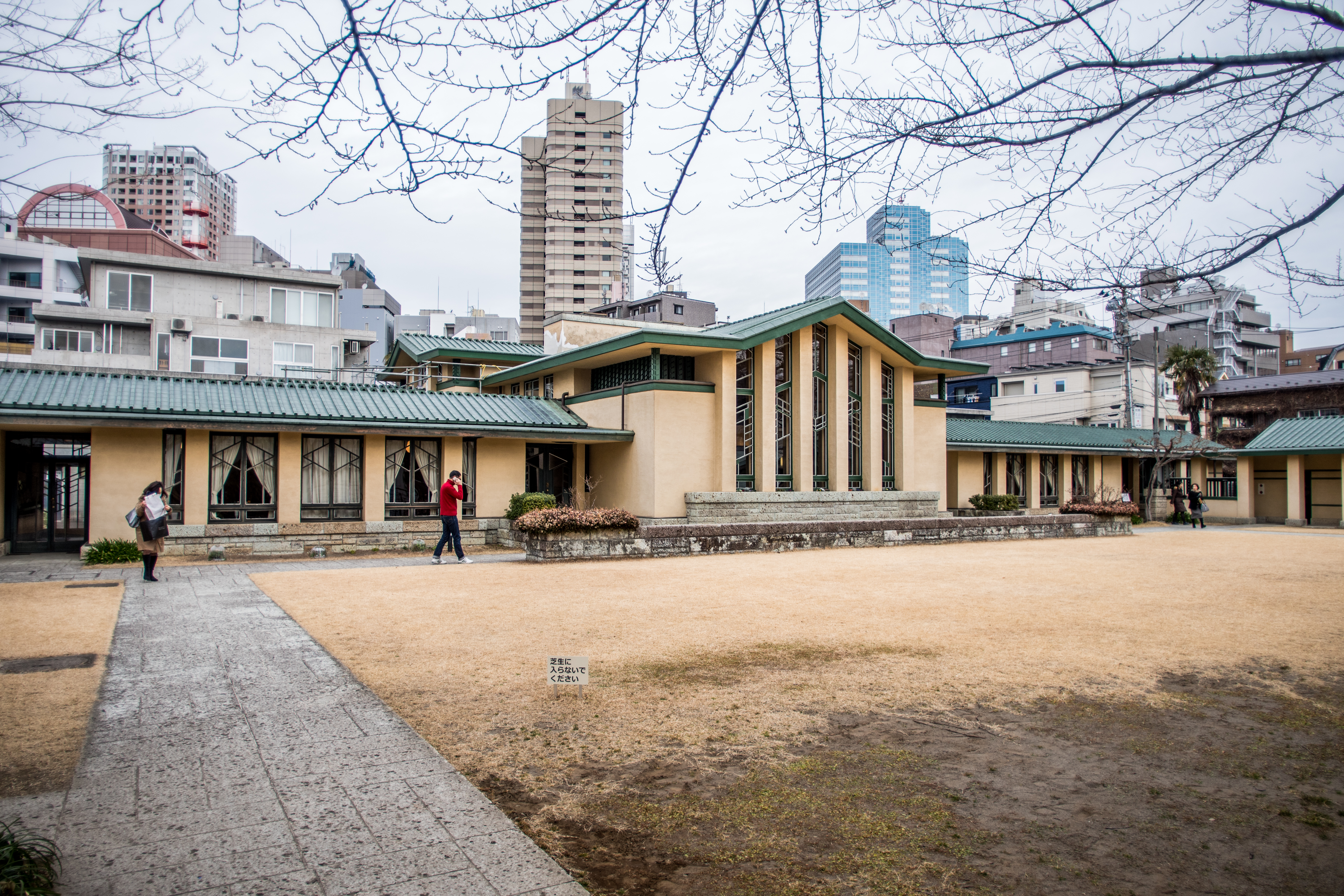 豊島区西池袋2-31-3 自由学園明日館 中央棟 重文 近代/学校 大正 大正10(1921) 木造、建築面積639.6㎡、一部二階、東西翼屋及び半地下付、切妻造、鉄板葺