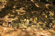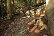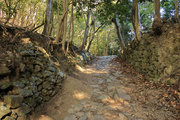 小峠から下に、約500メートルにわたる長大な石畳道が続いている。石材は道の周囲の岩盤から採取された砂岩で、長さ約30センチ前後のやや小型の石材を敷いている。石の継ぎ目が直線状になった箇所が数十メートル単位で見られ、構築単位が分かる。道は山の斜面を縫うように造られている。
