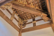 組物は純和様の三手先で三番目のトキョウは尾垂木の上にのり軒を受け、丸桁下に軒支輪をかけ小天井を造っている。