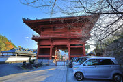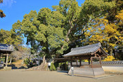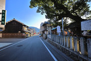 大門橋を渡る。巨大クスノキ。大門の手前に善光寺。