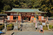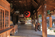 三間一戸楼門、入母屋造、正面軒唐破風付、本瓦葺、両側面袖塀附属
