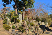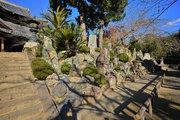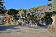 不動堂、本坊、童男堂(県文)、念佛堂、露座佛(市文)、太子堂、放出池、荷葉鉢(市文)と続く。